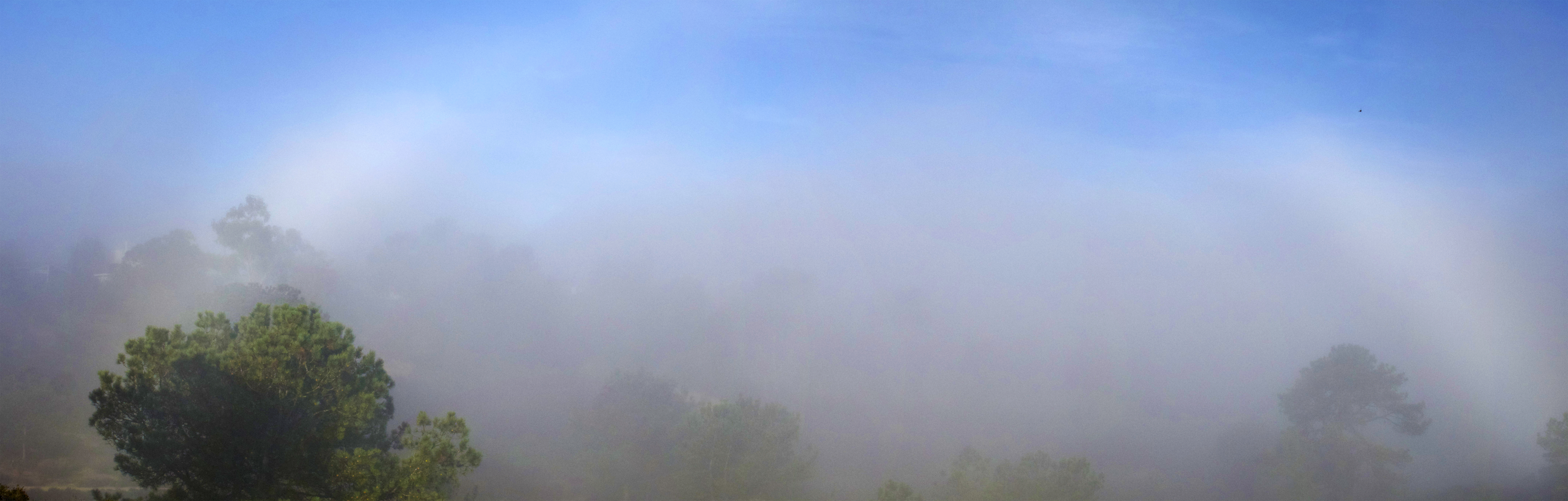 These fogs can be both ephemeral and effervescent, the sort of thing that makes you glad you dragged yourself upright before the day grew long in the tooth, treating us to a fogbow, if you will, like a low-laying rainbow, but where the mists do not refract the light into its component spectra.