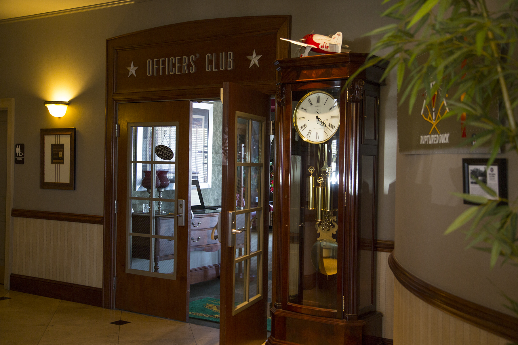 The hotel was just delightful, with comfortable rooms, and friendly staff.  No reservation?  No problem.  No rental car?  Here’s the keys to my car, just out the door, and there’s a really terrific restaurant, just a mile or so down the road.  The FBO arranged for a car the following morning, but that first night, being a Tuesday when the adjoining WWII diner was closed, it was hotel receptionist Peggy’s no-worries offer that provided transportation to two hungry travelers.  Dorothy, to Toto, I don’t think we’re in Del Mar any more. So you’ve maybe noticed that the hotel is actually a redone Hangar?  At this stage we had not yet learned about Fredricksburg’s Admiral Chester Nimitz history, but it began to dawn on us that this community reveres its WWII past, and finds ways to capitalize on it, including right here at the Hangar Hotel.   The lobby is delightfully art deco, replete with 1940s era music and period suitcases and decor.