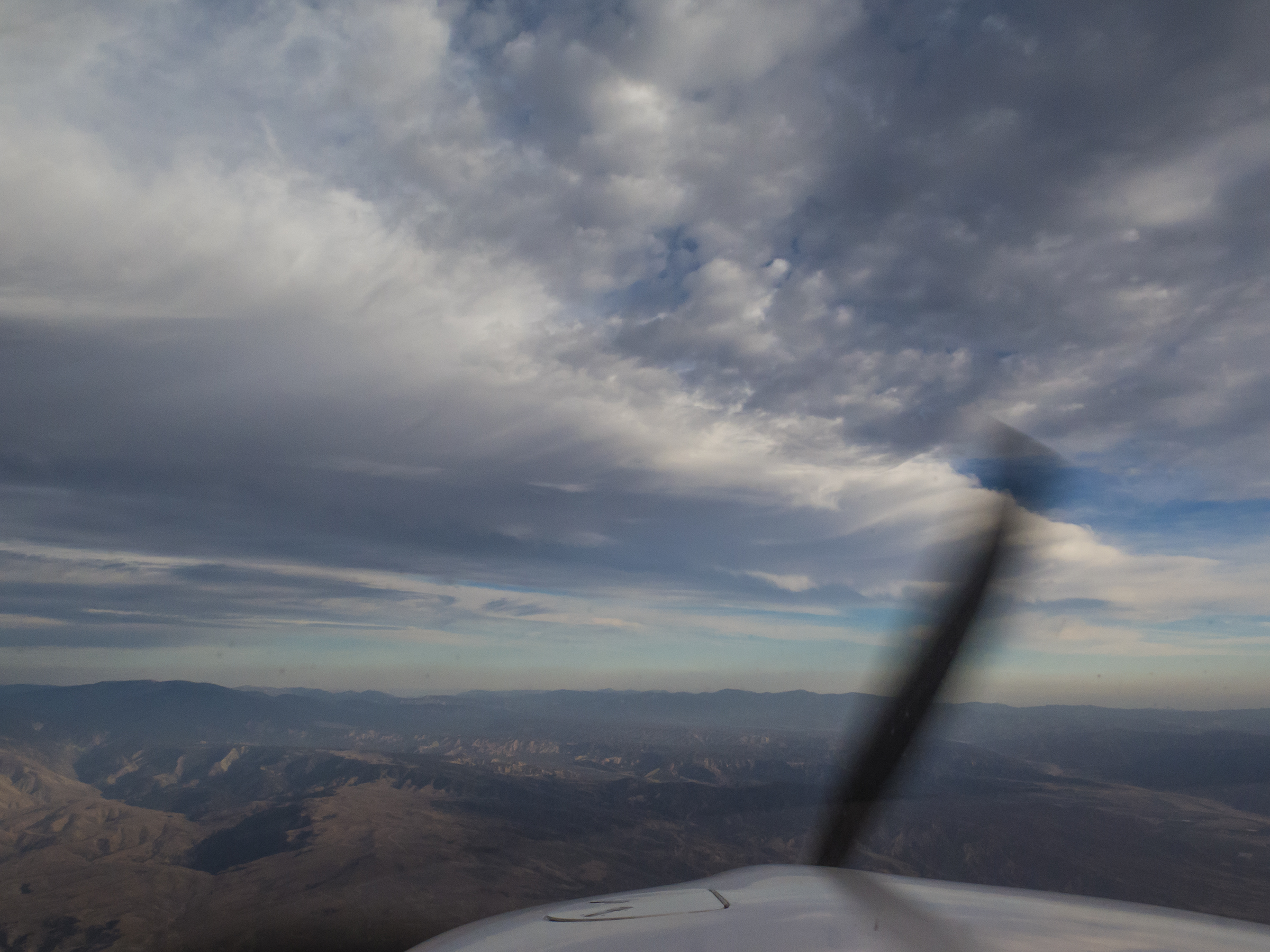 I like Calexico, because the formalities take something like five minutes, tops, and you’re on your way. And so it was on this trip, but nature turned the tables on us yet again, returning to a northern hemisphere winter more in keeping with the season than had been our SoCal departure. A cold front was arriving as we were, and I actually had to use the privileges of my airman certificate, climbing to on top of a cumulus strewn sky with strong winds and the potential for a turbulent thrashing about. On top it was smooth, but the rumbles joined a bit of mixed icing on our descent through the inclement weather to an instrument approach back where we’d departed at Montgomery Field. What wonderful opportunities Cathy and I have.